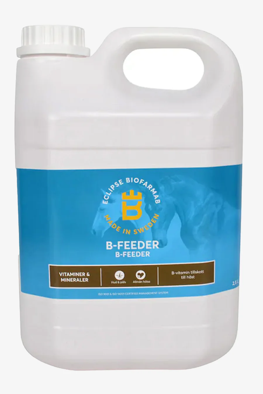 Flytande B-vitamintillskott med B1, B2, B6 och B12. Används med fördel vid pälssättning, pälsfällning, hård ansträngning eller annan påfrestande situation.Kan även användas som ett stöd för att främja aptit hos den kräsna hästen, under resor och intensiva tävlings- och träningsperioder.