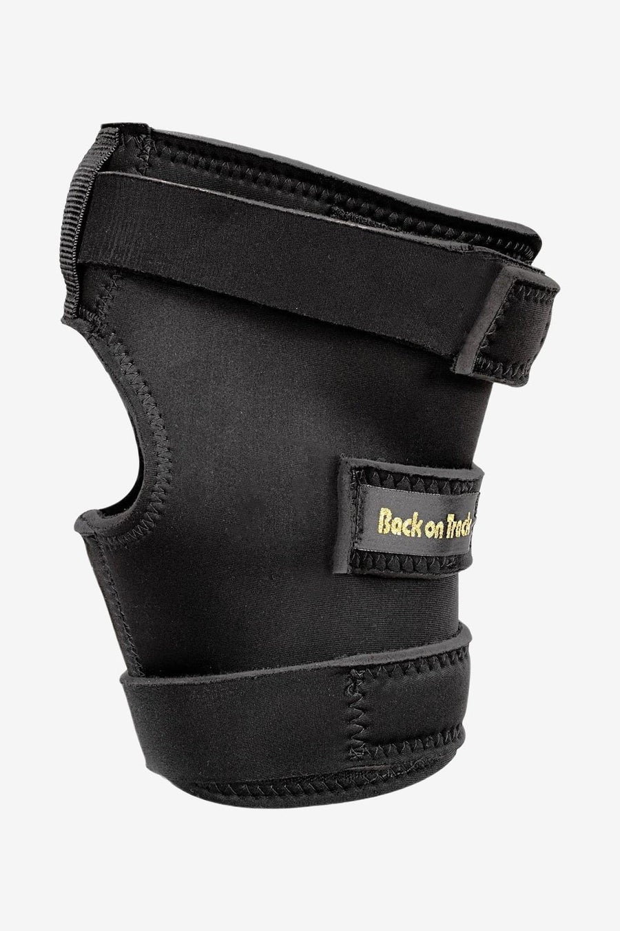 "Hasskydd med öppning Höger L" är ett hästskydd för höger has (bakknä), från märket Back on Track, designat för att ge lättare stöd och behandling vid stelhet, inflammation och artros genom att reflektera kroppsvärmen, och har en öppning för hasspetsen för bättre passform, finns i storlek L (Large), och används i stall, transport eller vid vila.