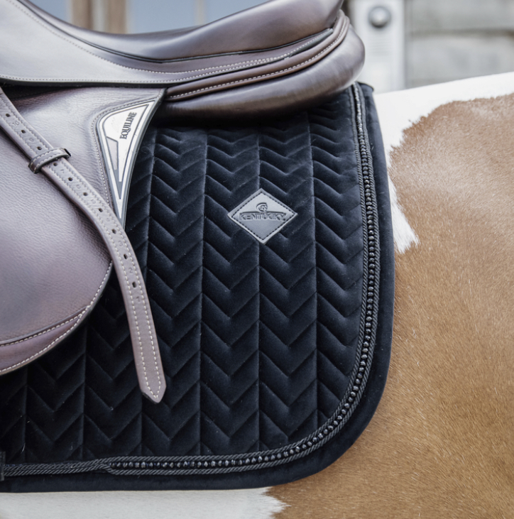 Saddle Pad Velvet från Kentucky Horsewear är följsamt formad efter hästens kropp och ger utmärkt dämpning mellan hästens rygg och sadeln samtidigt som ryggen skyddas mot friktion.