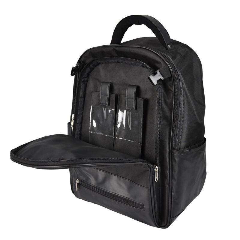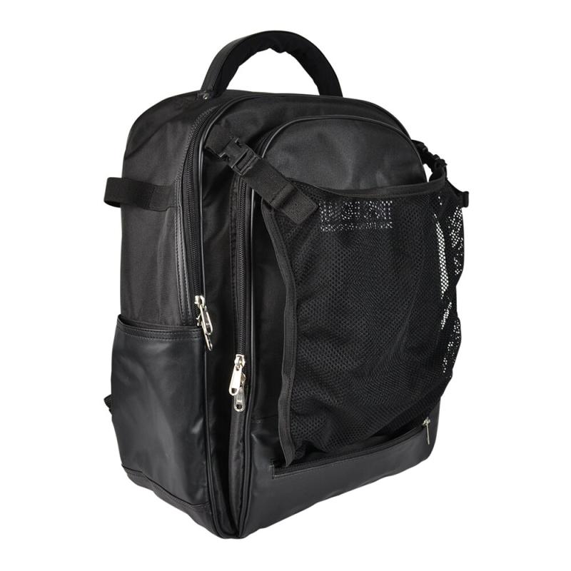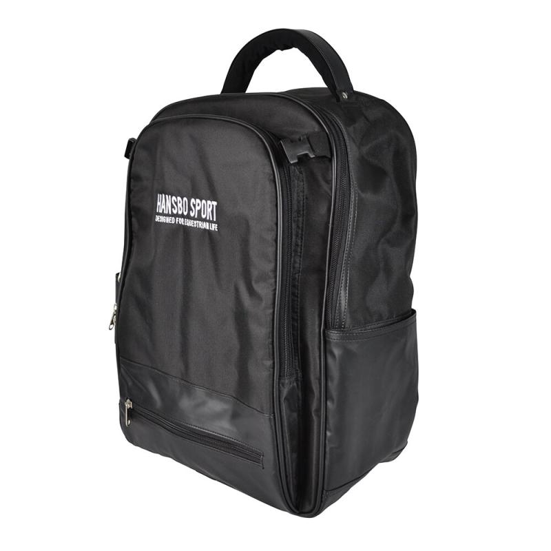 Funktionell grooming ryggsäck med justerbara vadderade axelremmar och detaljer av konstläder. Utfällbar ficka av mesh för hjälmförvaring. Fack/fickor invändigt för smart förvaring av borstar, sprayflaskor och tillbehör. Huvudutrymmet är designat med förslutningsbar innerficka, samt vadderad del för Ipad eller dator. Sidfickor samt spöhållare. Underdel förstärkt med konstläder samt pluppar för stabilitet. Perfekt väska för jobb, skola, stallet eller tävlingsplatsen.