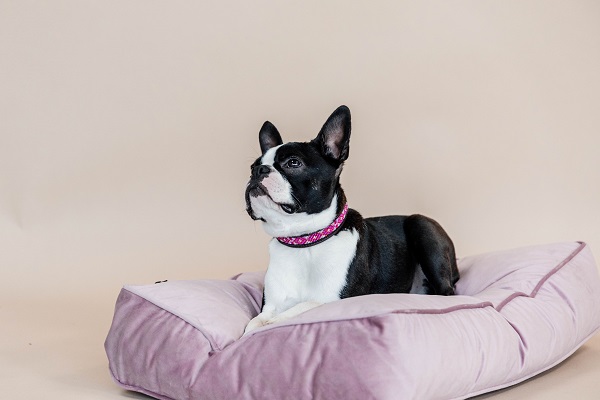 Material & tyg Det avtagbara överdraget är tillverkat i mjuk sammet. Det kan enkelt tas av tack vare en stark dragkedja. Kudden är fylld med en mjuk men fast fiberfyllning som är giftfri för hundar och inte absorberar lukt.