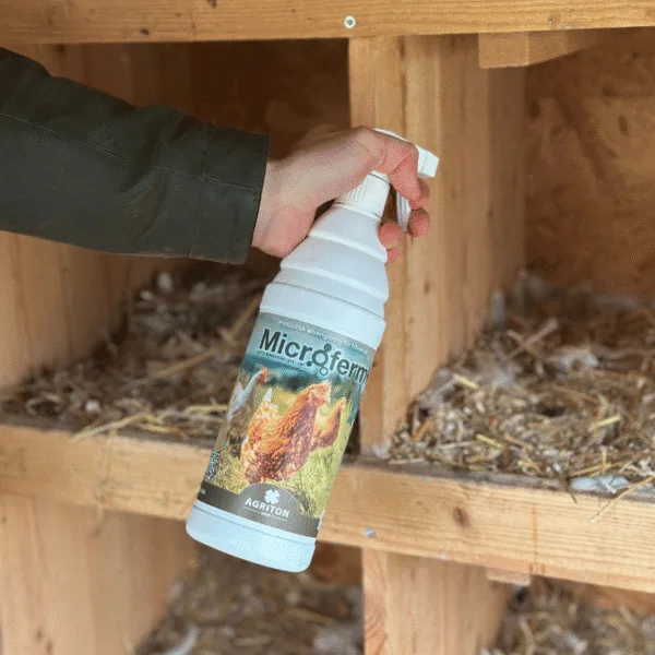 Microferm är en fermenterad och probiotisk allrengöring för hönshus. De goda bakterierna har förmågan motverka kvalster och patogena bakterier samt neutralisera ammoniak och dålig lukt.