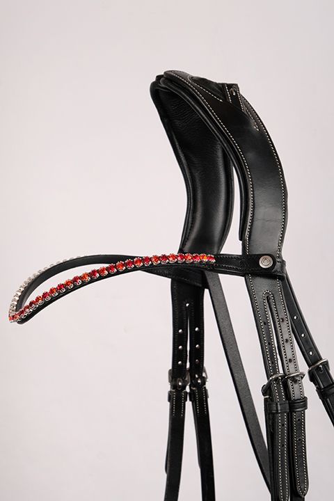 Pannband tillverkat av mjukt indiskt läder av högsta kvalitet. Pannbandet är format med en lätt kurva för bättre passform. Alla Montar-pannband har en praktisk snäppknapp och invändig silikon, vilket gör dem enkla att byta och säkerställer att de sitter säkert på plats under ridning.