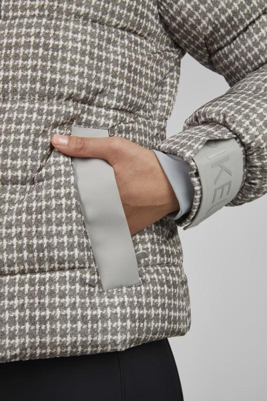 Quiltad jacka med fast huva Högkvalitativt, glansigt nylontyg och heltäckande matt mönster. Skräddarsydd skärning Höftlängd (61 cm för storlek 38), invändig elastisk fåll Sorona Fibreball-fyllning: säkerställer utmärkt värmehållning,