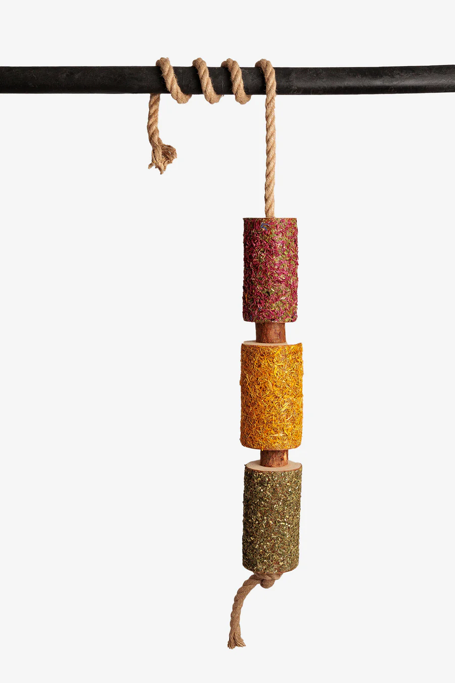Varje träbit är noggrant utvald direkt från skogen och lämnas i sitt naturliga, obehandlade tillstånd – för att bevara de dofter och texturer som hästar instinktivt söker sig till.