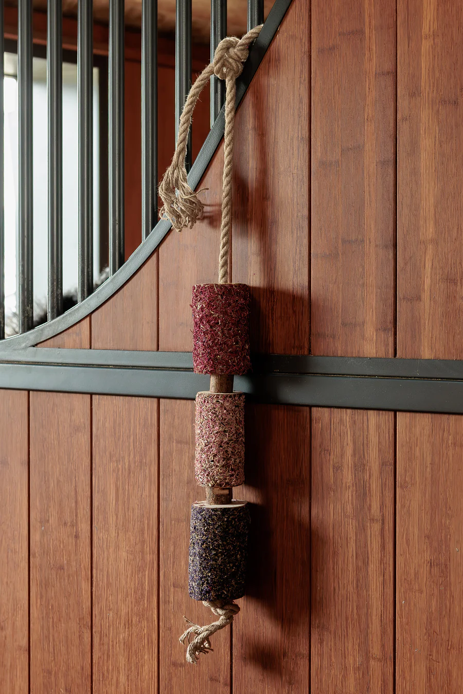 Stilren aktivering för hästen – både i boxen och i hagen. Den här eleganta hängleksaken i trä från Grooming Deluxe är inte bara en snygg detalj i stallet – den är också en smart och hållbar lösning för att hålla hästen sysselsatt. Tillverkad i naturligt trä och utformad för att tåla både nyfikna mular och lekfulla tänder, hjälper den till att minska stress och tristess i boxen.