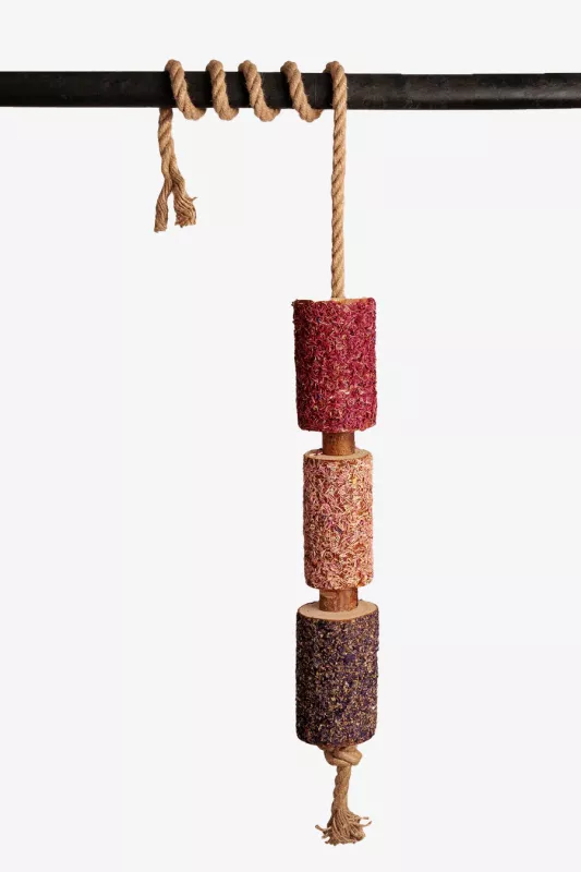 Varje träbit är noggrant utvald direkt från skogen och lämnas i sitt naturliga, obehandlade tillstånd – för att bevara de dofter och texturer som hästar instinktivt söker sig till.